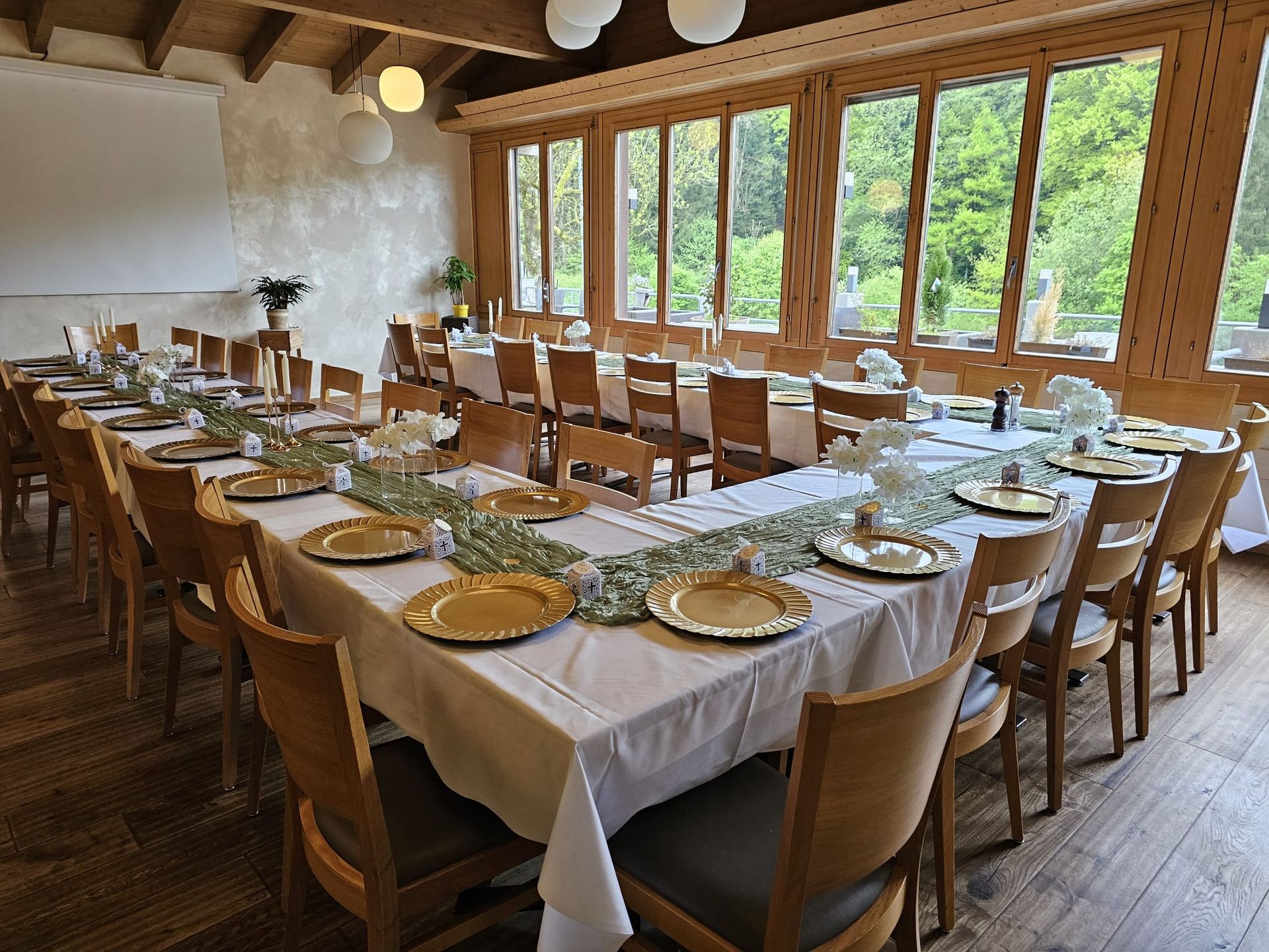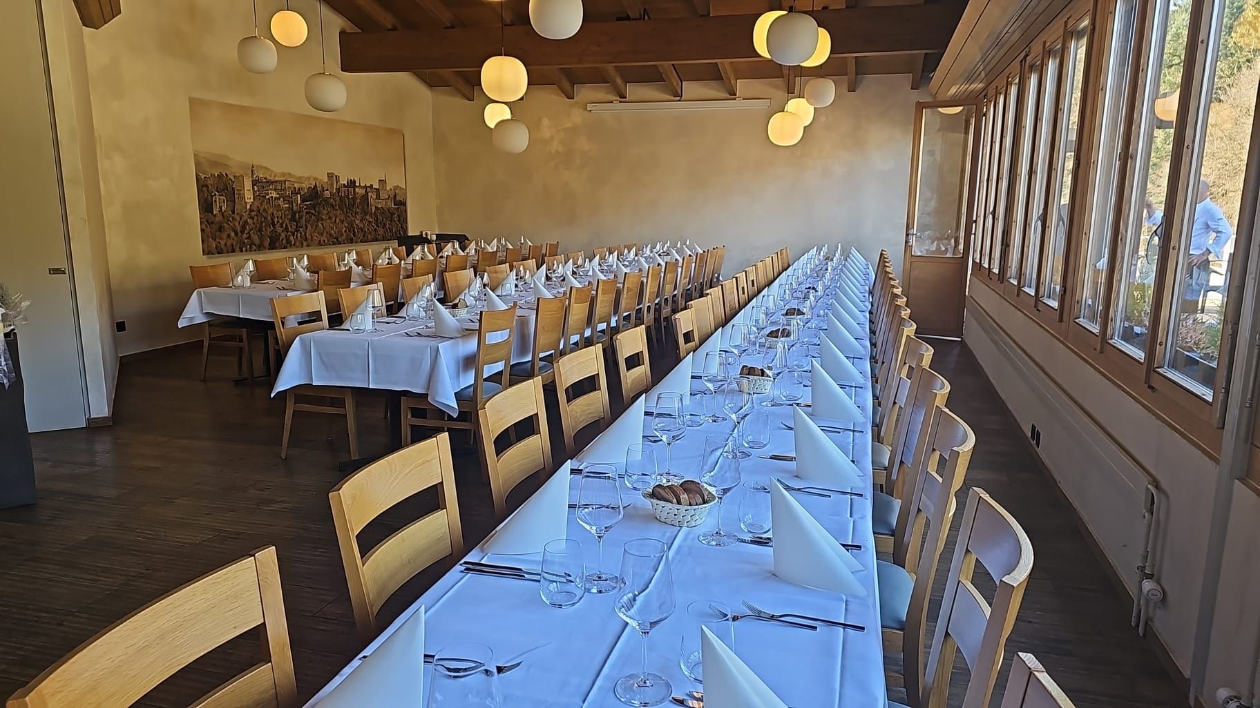 Der ideale Raum für kleinere Feiern und vertraute Runden. Ob Geburtstag, Kommunion, Firmung, Sitzung, Taufe oder eine stille Trauerfeier – der Kamin Saal bietet einen warmen Rahmen mit viel Privatsphäre.